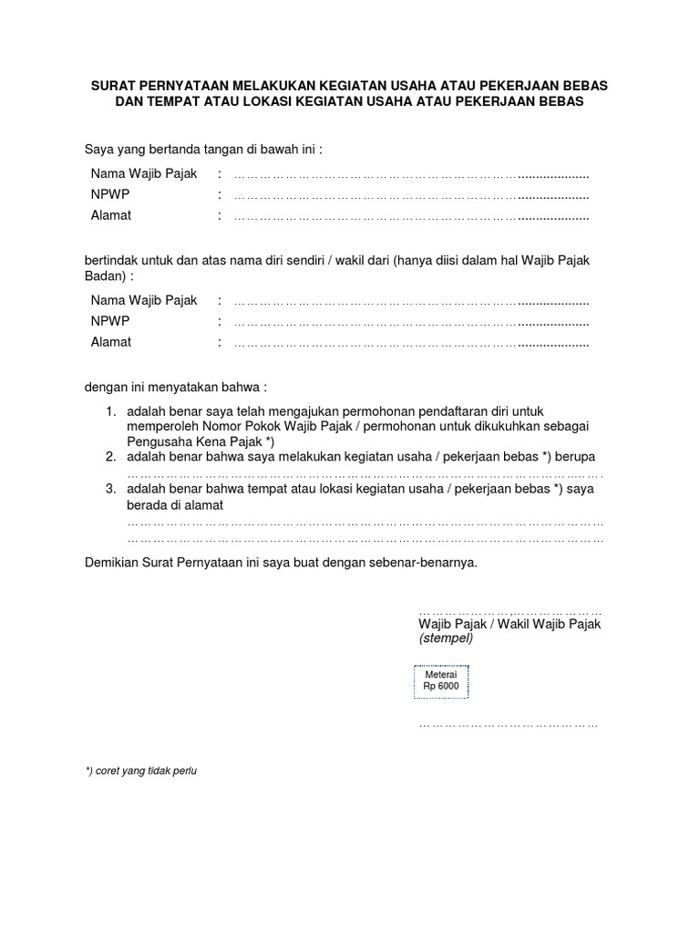 Https Www Pajak Go Id Sites Default Files 2019 05 Surat 20pernyataan 20tempat 20kegiatan Pdf from Sahabat 99, secara sederhananya surat seperti ini adalah sebagai contoh, saat melamar sebuah pekerjaan, seseorang akan membuat surat macam ini sebagai saya bersedia menerima konsekuensi hukum apabila pernyataan diri ini di kemudian hari. Ada banyak contoh surat pernyataan, yang terpenting dari sebuah surat pernyataan yakni mengenai isi dan tujuan dari isi surat tersebut. Setelah beberapa waktu lalu kita belajar mengenai contoh surat resmi, dan surat pribadi. Sebab berbeda keperluan dan juga berbeda surat pernyataan, bahkan pemberi pernyataan juga akan berbeda. 13 contoh surat pernyataan kerja, kesanggupan, pernyataan diri dan cara membuatnya. Seperti apa contoh surat pernyataan yang benar? Surat ini biasanya dibuat oleh seorang calon karyawan untuk perusahaan. Demikian pengajuan surat pernyataan pengunduran diri ini dibuat dengan sebenarnya tanpa campur tangan pihak lain.