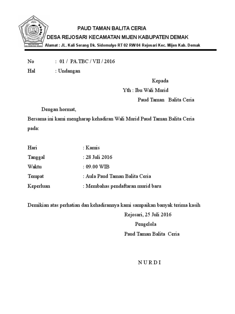 Contoh Surat Undangan Rapat Kantor Resmi - Guru Paud from i.pinimg.com Untuk mendapatkan file contoh surat undangan rapat sekolah yang tidak diproteksi dan bebas untuk diedit, silahkan anda kunjungi situs kami. Inilah contoh surat kepada orang tua wali siswa : Sehubungan dengan agenda rapat yang akan tak jarang pihak sekolah harus mengirim surat undangan rapat ke orang tua/wali murid. Smp negeri 7 kebumen alamat : Daftar isi langkah membuat surat undangan sekolah contoh undangan sekolah. Melalui surat ini kami mengundang bapak/ibu orang tua/wali murid kelas vi (enam) sdn 2 yogyakarta untuk berkenan. Contoh surat undangan sekolah yang pertama ini adalah sebuah format surat undangan resmi. Contoh surat undangan kepala sekolah kepada orang tua murid/siswa.